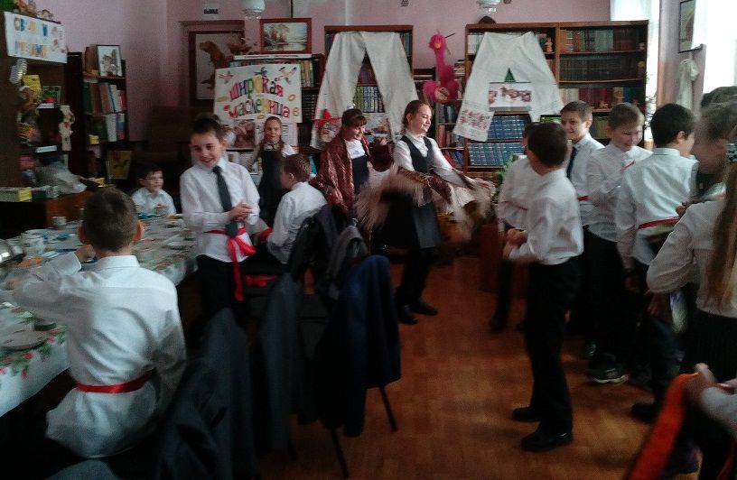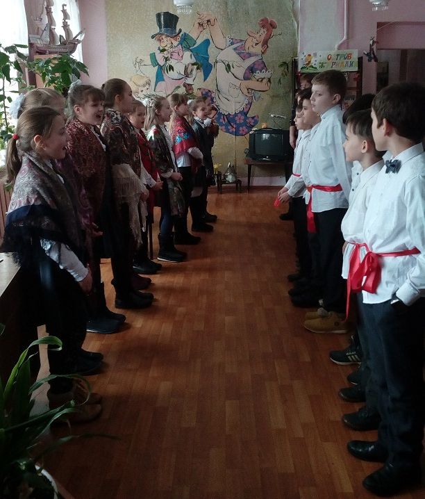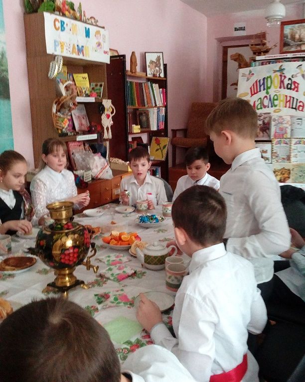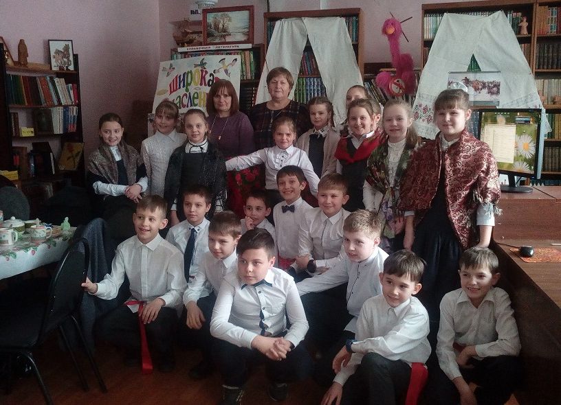 15 февраля ученики 3«В» класса МБОУ СОШ №2 (классный руководитель Фаркова Н.П.) собрались в городской детской библиотеке №4 на фольклорные посиделки-состязание «Вспомним привычки милой старины - как на Масленице жирной пеклись русские блины».