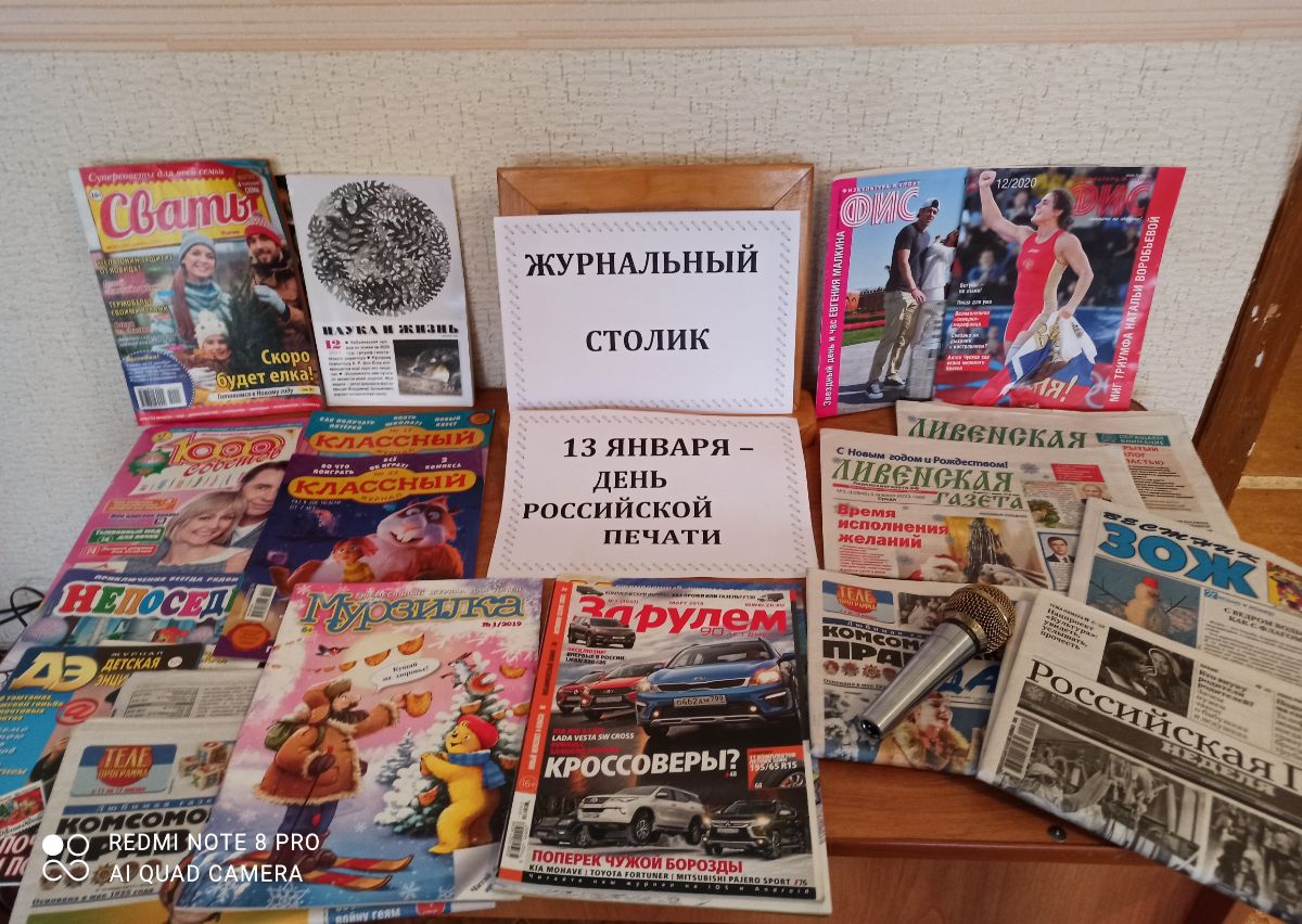 13 января отмечается День Российской печати. Это праздник бумажных носителей информации, праздник всех, кто каким-либо образом связан с созданием периодики. Учитывая, что в нашей стране падает интерес к печатному слову, падают тиражи не только газет, журналов, но и, что обидно книг. Очень важно воспитывать с детских лет активных читателей. В этот день городская библиотека № 2 совместно с Ливенским филиалом Орловской спецбиблиотеки им. А.Г.Абашкина провели познавательный час «Что лист печатный нам готовит» с ребятами из отделения социальной реабилитации для инвалидов детства. Библиотекари рассказали воспитанникам центра об истории возникновения праздника, о выходе первой русской газеты, о роли СМИ в жизни общества. В ходе мероприятия каждый желающий смог примерить на себя роль репортёра. Ребята приняли участие в викторине, а так же посмотрели мультфильм «Зима в Простоквашино», одним из главных героев которого является почтальон Печкин. Также для своих читателей работники библиотеки подготовили выставку из журналов и газет «Журнальный столик!»