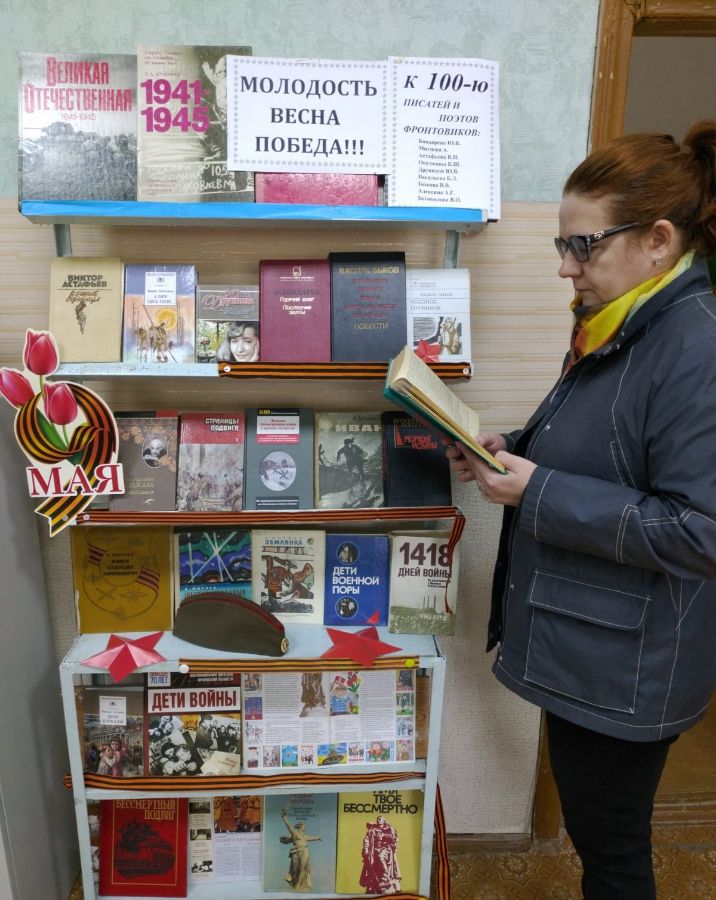 Ко Дню Великой Победы в городской библиотеке № 2 для читателей оформлена книжная выставка «Молодость. Весна. Победа!!!».