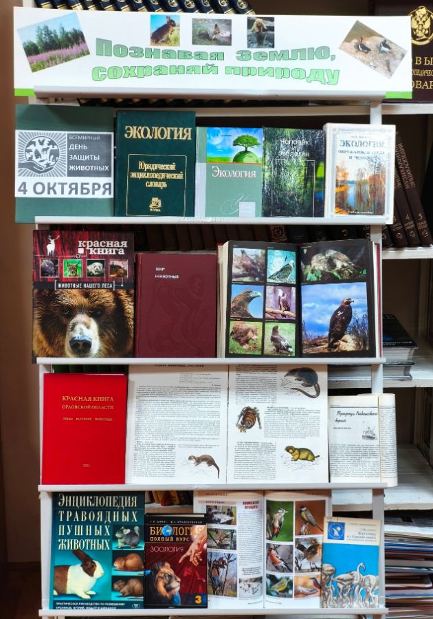 К Всемирному дню защиты животных, который ежегодно вся планета отмечает 4 октября, в городской библиотеке № 1 организована выставка литературы «Познавая землю, сохраняй природу».