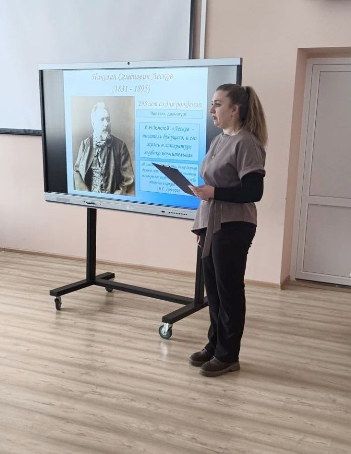 Библиотекарь рассказала о жизни и творчестве Лескова, который был не только писателем, но и публицистом, и литературным критиком. Лесков верил в праведную Россию и в своих произведениях часто изображал уникальных героев, символизирующих весь русский народ.