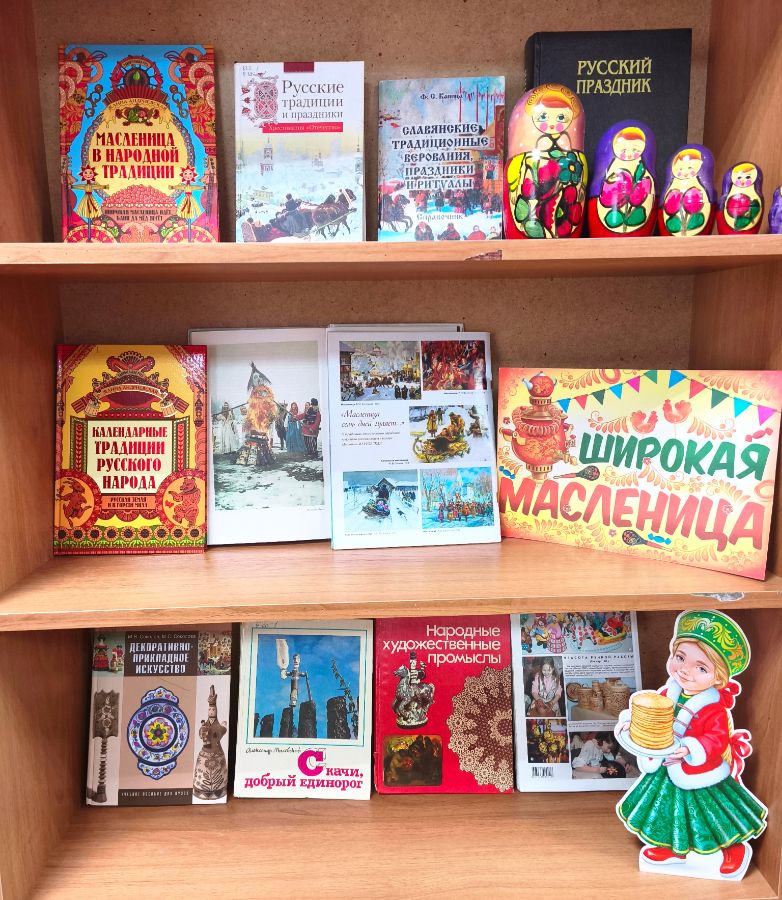На выставке представлены книги по истории и культуре, которые раскроют все тайны масленичной недели. Узнайте, откуда пришла Масленица, какие обряды и обычаи сопровождали этот праздник на Руси. Помимо книг на выставке представлены предметы народно-художественного промысла, которые создают уютную и праздничную атмосферу.